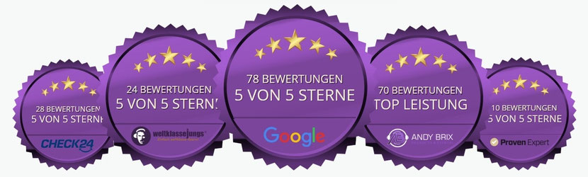Auf der eigenen Homepage im Gästebuch, der größten DJ-Agentur Deutschlands sowie auf externen Bewertungsportalen wie Google, Check24 und weiteren Portalen sind mehr als 200 tolle Kundenmeinungen und 5-Sterne Bewertungen von meinen Kunden aufgeführt.